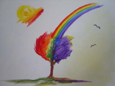 Der Regenbogenbaum, Frühjahr 2002- Eins der neueren Lieblingsbilder,Acryl auf Leinwand
