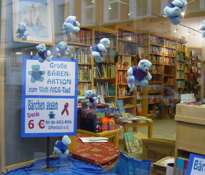 Schaufenster im "Buchladen am Markt" in Offenbach zum Welt-AIDS Tag 2004