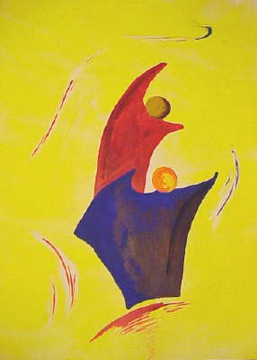 Inspiriert durch zwei lebensfreudige Glasfiguren in Venedig - begonnen in 2001,fertiggestellt Ende 2002,Acrylfarben