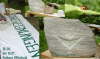Bearbeitung von Grabsteinen (Bruchsteine) mit dem Meißel - Workshop für HIV-positive Menschen der AH Offenbach - August 2005 |